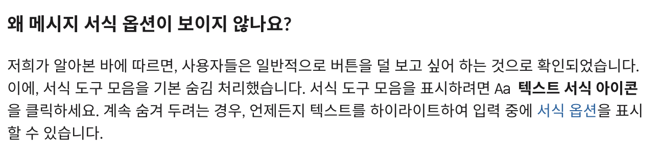 슬랙의 말에 따르면 사용자들이 버튼을 덜 보고 싶어했기 때문에 감추었다고 했다.