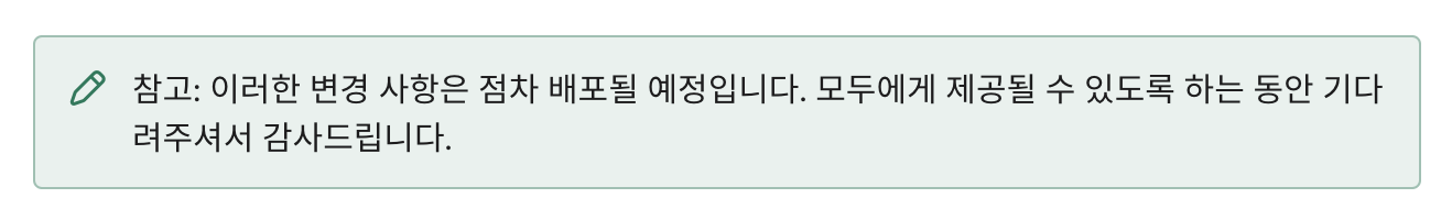 앞서 12개의 스페이스를 언급한 이유인데, 12개의 스페이스 중 확인해본 결과, 총 2개만 새로운 메시지가 적용되었다. 처음엔 A/B테스트인가 했는데 그렇다고 하기엔 이번 변경에 대한 도움말에서 점차 배포될 예정이라고 알려줬다.