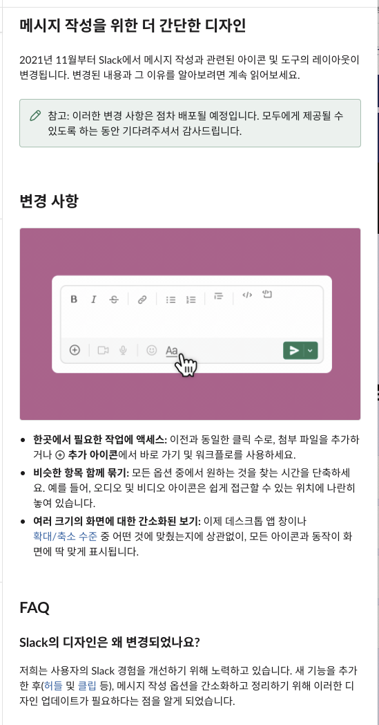 슬랙의 기능 업데이트 방법